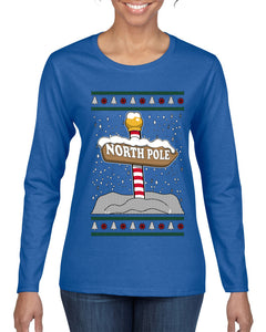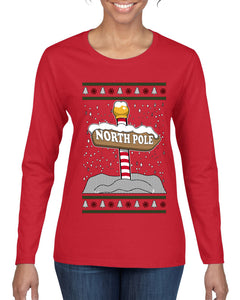 North Pole, Ugly Christmas Sweater Womens Graphic Long Sleeve T-Shirt