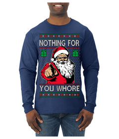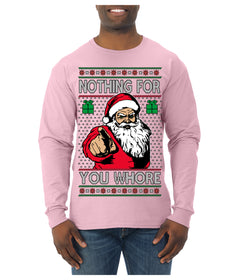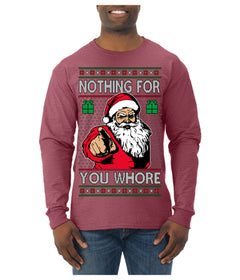 Nothing For You Whore Funny Vulgar Santa Claus Ugly Christmas Sweater Mens Long Sleeve Shirt