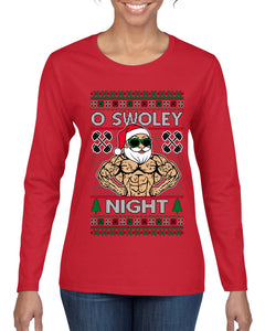 O Swoley Night, Exercise and Fitness Enthusiast, Ugly Christmas Sweater Womens Graphic Long Sleeve T-Shirt