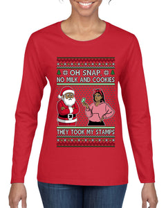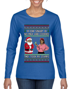 Oh Snap, No Milk And Cookies, They Took my Stamps, Ugly Christmas Sweater Womens Graphic Long Sleeve T-Shirt
