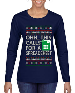 Oh... This Calls for A Spreadsheet, Ugly Christmas Sweater Womens Graphic Long Sleeve T-Shirt