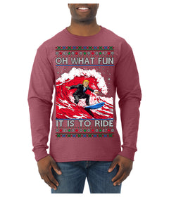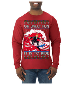 Oh What Fun It Is to Ride Donald Trump Red Wave Landslide Ugly Christmas Sweater Mens Long Sleeve Shirt