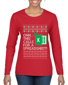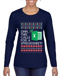 Ohh This Calls For A Spreadsheet Office, Ugly Christmas Sweater Womens Graphic Long Sleeve T-Shirt