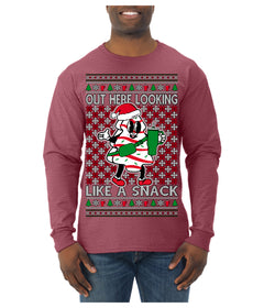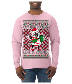 Out Here Looking Like a Snack Funny Cute Christmas Cookie Ugly Christmas Sweater Mens Long Sleeve Shirt
