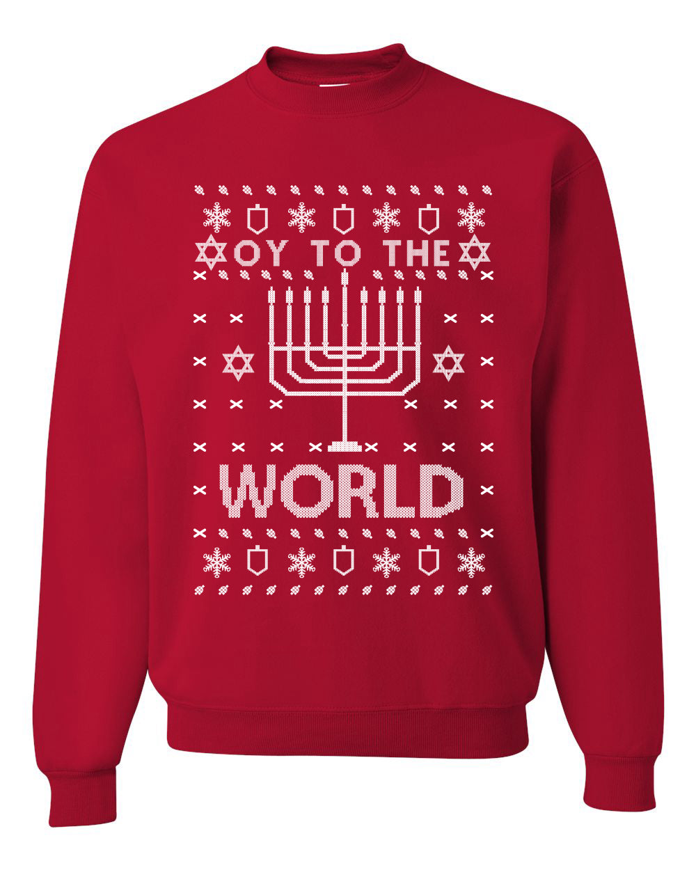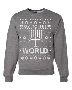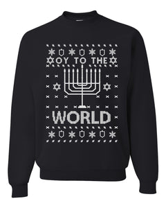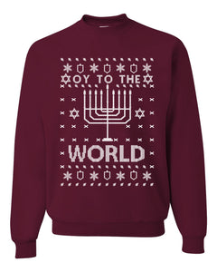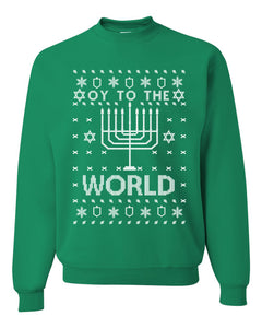 Oy to The World | Jewish Christmas Menorah Merry Ugly Christmas Sweater Unisex Crewneck Graphic Sweatshirt
