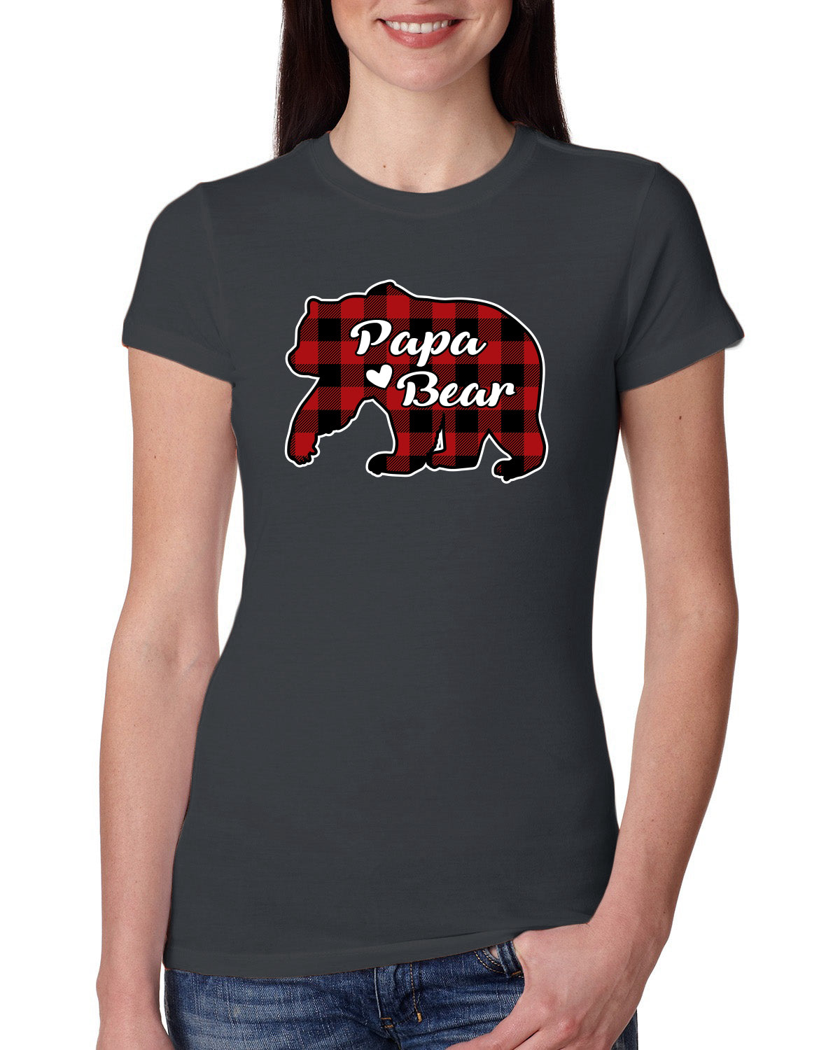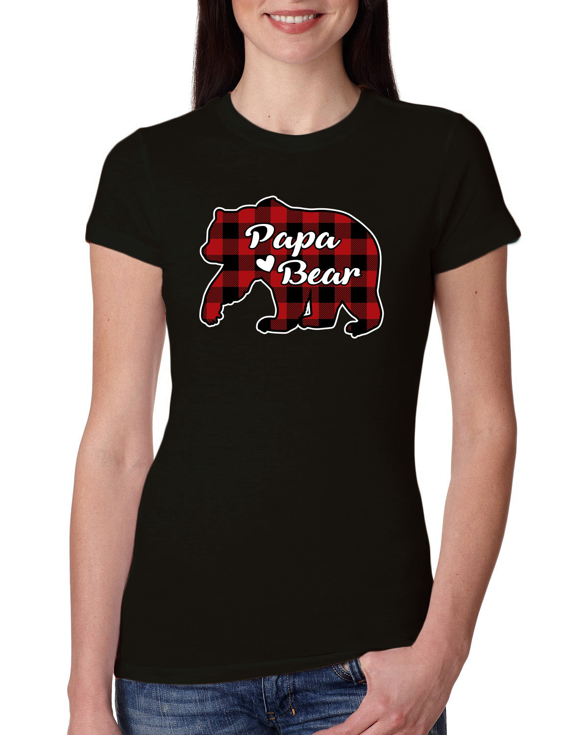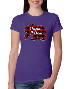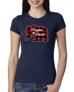 Papa Bear Cool Plaid Matching Design Christmas Womens Slim Fit Junior Tee
