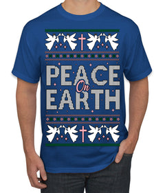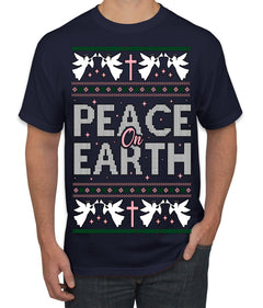 Peace On Earth Funny Xmas Cute Pink Angel Cross Ugly Christmas Sweater Men's T-Shirt