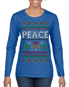 Peace Ugly Christmas Sweater Womens Graphic Long Sleeve T-Shirt
