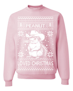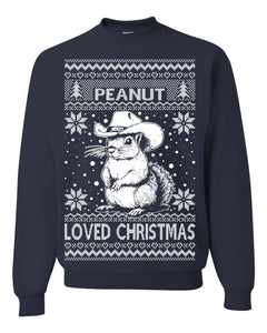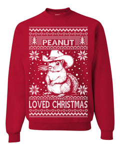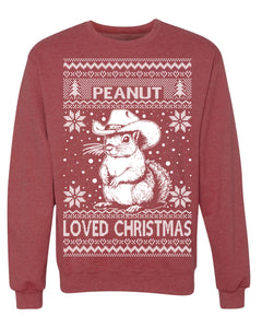 Peanut Loved Christmas RIP Funny Viral Squirrel Meme Ugly Christmas Sweater Crewneck Sweatshirt