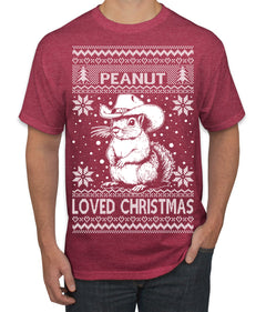 Peanut Loved Christmas RIP Funny Viral Squirrel Meme Ugly Christmas Sweater Men's T-Shirt