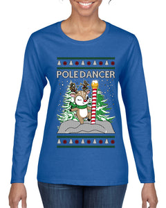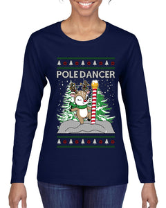 Pole Dancer, Ugly Christmas Sweater Womens Graphic Long Sleeve T-Shirt