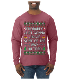 Probably Just Gonna Jingle Some Of The Way I'm Tired, Ugly Christmas Sweater Unisex Mens Long Sleeve Shirt
