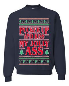 Pucker Up And Kiss My Jolly Ass, Unisex Ugly Christmas Sweater, Crewneck Sweatshirts
