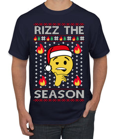Rizz the Season Viral Internet Fire Emoji Face Meme Ugly Christmas Sweater Men's T-Shirt