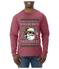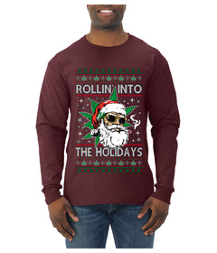 Rollin' Into The Holidays Christmas Sweater, Ugly Christmas Sweater Mens Long Sleeve Shirt