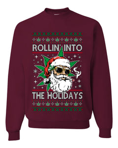 Rollin' Into The Holidays Christmas Sweater, Ugly Christmas Unisex Sweater, Crewneck Sweatshirts