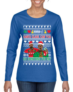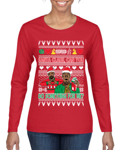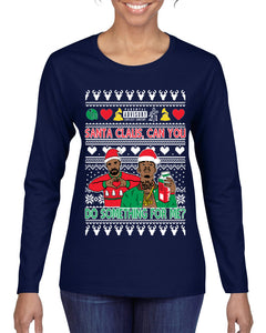 Santa Claus, Can You Do Something For Me? Ugly Christmas Sweater Womens Graphic Long Sleeve T-Shirt