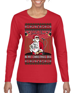 Santa Claus In My Christmas Era Xmas Ugly Christmas Sweater Womens Graphic Long Sleeve T-Shirt