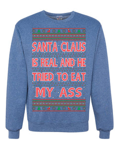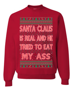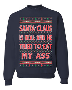 Santa Claus Is Real He Tried To Eat My Ass Ugly Christmas Sweater Unisex Crewneck Graphic Sweatshirt
