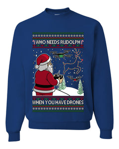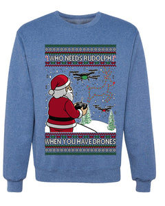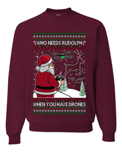 Santa Drone Show Reindeer, Unisex Ugly Christmas Sweater Crewneck Sweatshirts