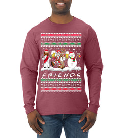 Santa Friends TV Parody Funny Characters Ugly Christmas Sweater Mens Long Sleeve Shirt