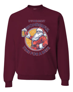 Santa Its the Most Wonderful Time for a Beer Merry Christmas Unisex Crewneck Graphic Sweatshirt