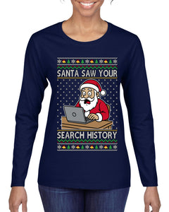 Santa Saw Your Search History, Funny Internet Humor, Ugly Christmas Sweater Womens Graphic Long Sleeve T-Shirt