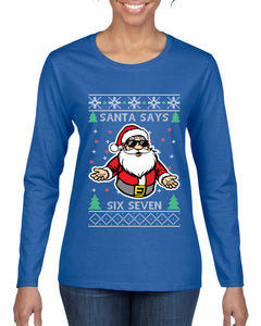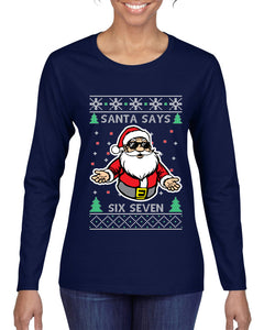 Santa Says 6 7 Meme, Ugly Christmas Sweater Womens Graphic Long Sleeve T-Shirt