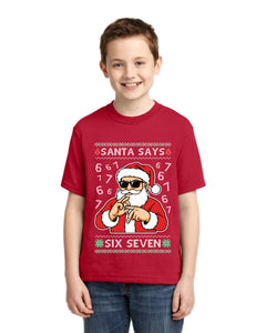 Santa Says 6 7 Numbers Meme Ugly Christmas Sweater For Kids | Unisex Boys Girls Graphic Youth T-Shirt