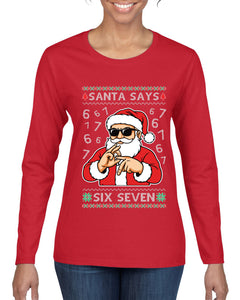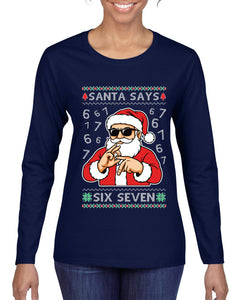 Santa Says 6 7 Numbers Meme, Ugly Christmas Sweater Womens Graphic Long Sleeve T-Shirt