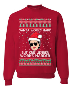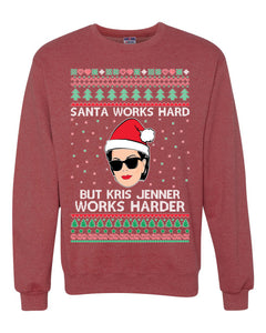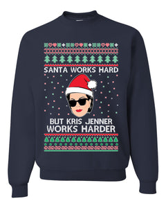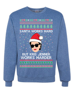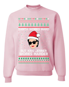 Santa Works Hard But Kris Jenner Works Harder Ugly Christmas Sweater Unisex Crewneck Sweatshirt