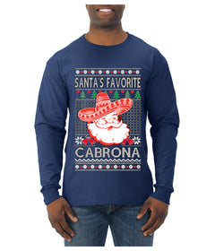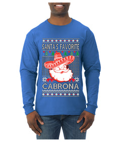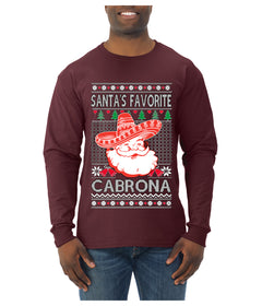 Santa's Favorite Cabrona, Ugly Christmas Sweater Unisex Mens Long Sleeve Shirt