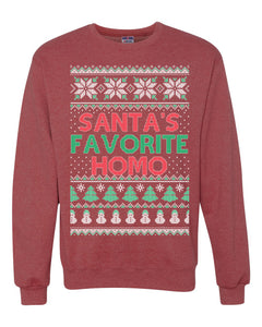 Santa's Favorite Homo Ugly Christmas Sweater Unisex Crewneck Sweatshirt