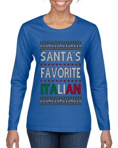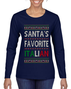 Santa's Favorite Italian, Funny Italian Christmas Sweater, Ugly Christmas Sweater Womens Graphic Long Sleeve T-Shirt