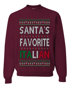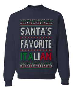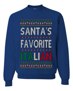 Santa's Favorite Italian, Funny Italian Christmas Sweater, Unisex Ugly Christmas Sweater, Crewneck Sweatshirts