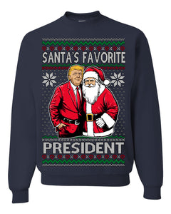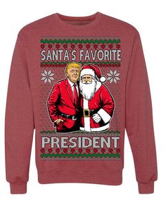Santa's Favorite President Red Suit Trump Ugly Christmas Sweater Crewneck Sweatshirt