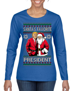Santa's Favorite President Red Suit Trump Ugly Christmas Sweater Womens Graphic Long Sleeve T-Shirt