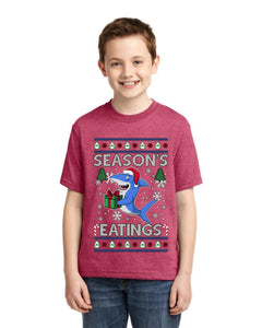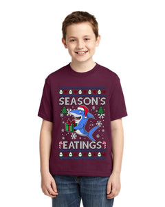 Season's Eatings Shark Ugly Christmas Sweater For Kids | Unisex Boys Girls Graphic Youth T-Shirt