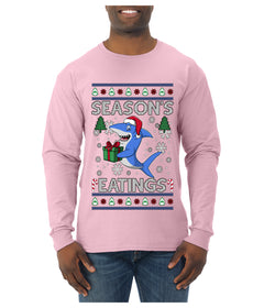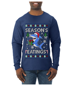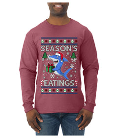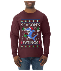 Season's Eatings Shark, Ugly Christmas Sweater Unisex Mens Long Sleeve Shirt