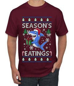 Season's Eatings Shark, Ugly Christmas Sweater Unisex Men's T-Shirt
