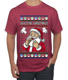 Seazyns Greeting Santa Packing Lip Pouch, Ugly Christmas Sweater Unisex Men's T-Shirt
