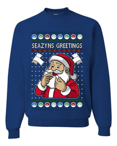 Seazyns Greeting Santa Packing Lip Pouch, Unisex Ugly Christmas Sweater Crewneck Sweatshirts