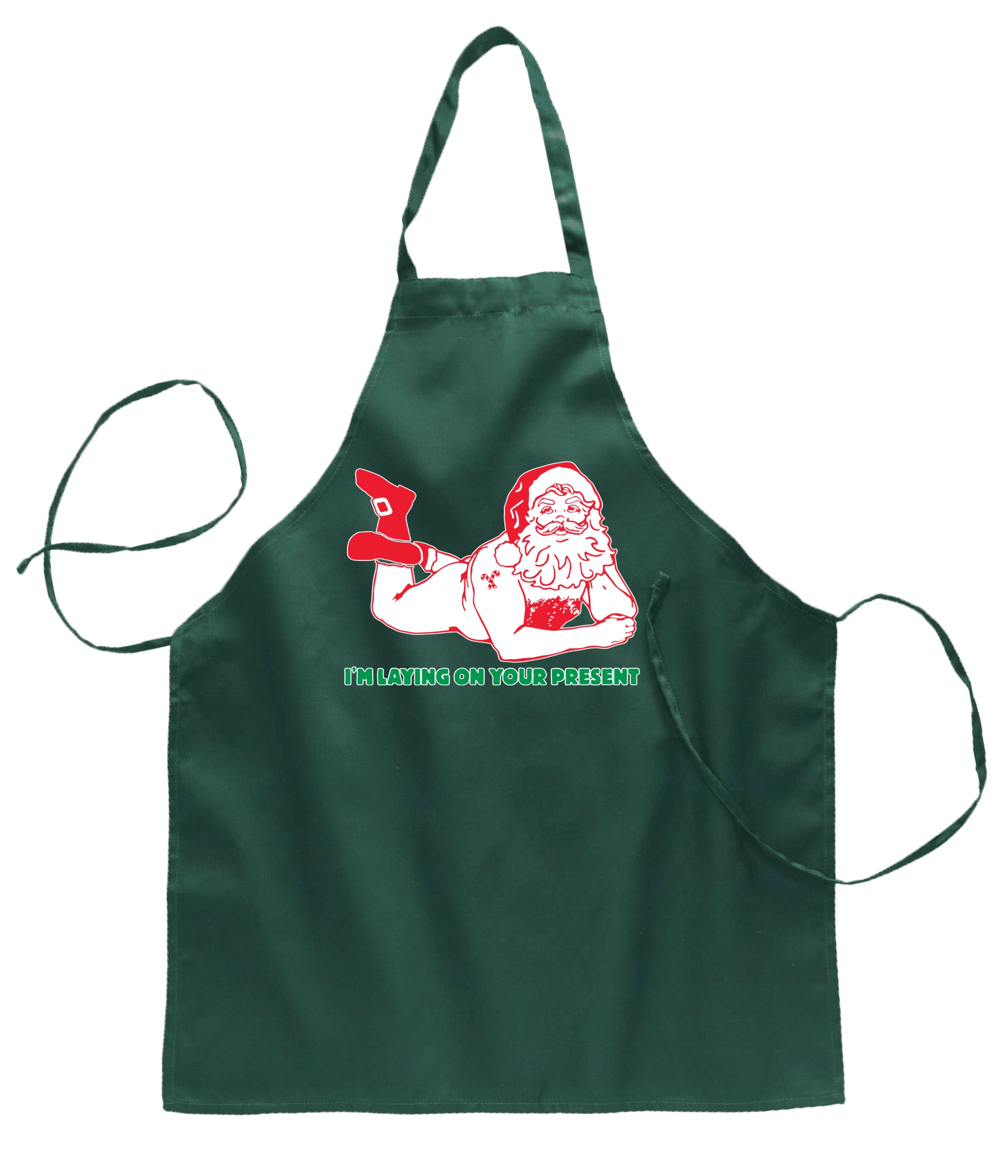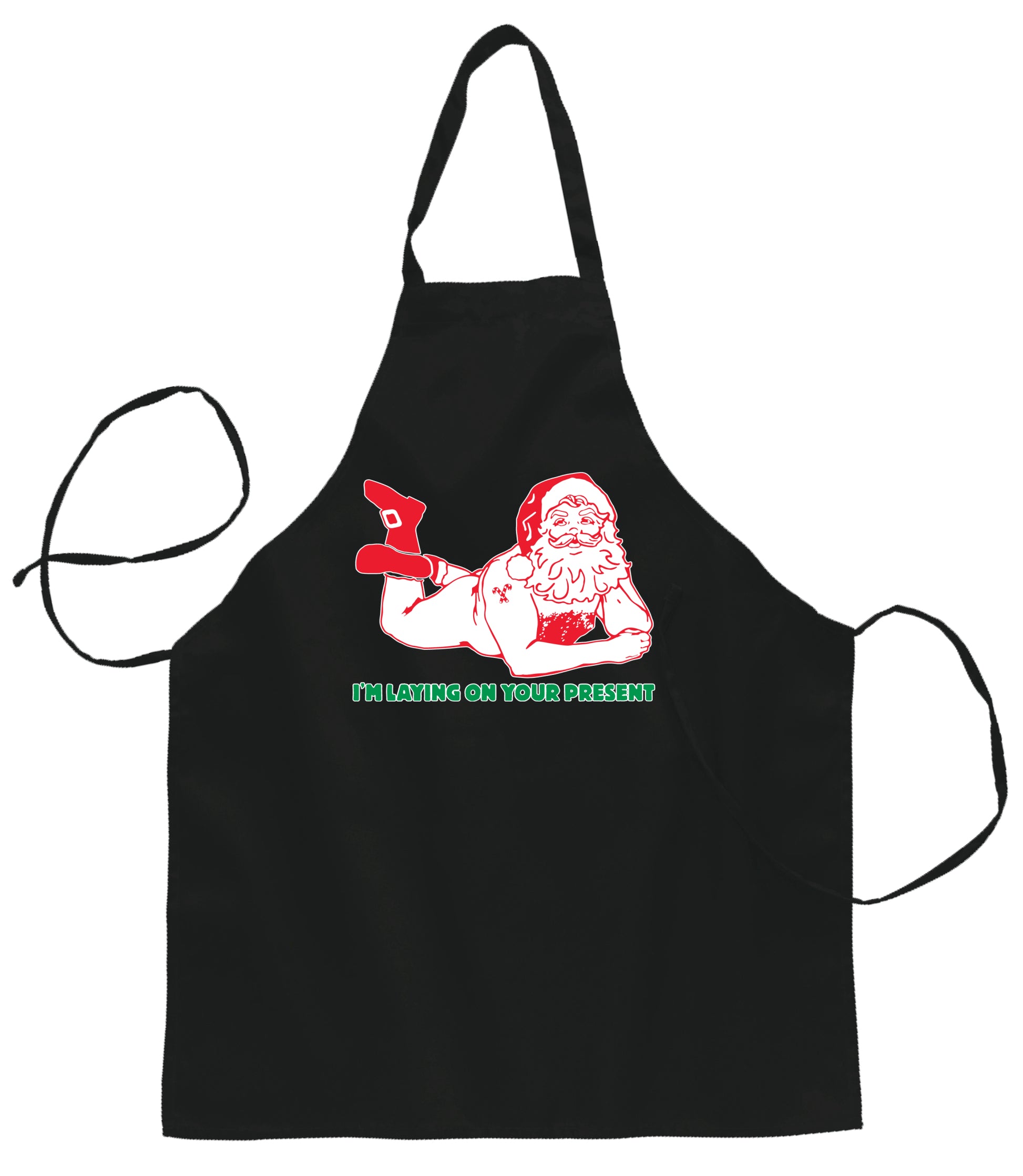 Sexy Santa Im Laying on Your Present Christmas Ugly Christmas Sweater Ugly Christmas Butcher Graphic Apron for Kitchen BBQ Grilling Cooking