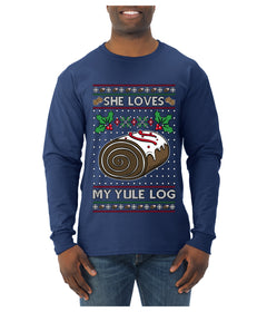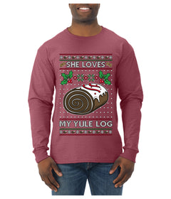 She Loves my Yule Log, Ugly Christmas Sweater Mens Long Sleeve Shirt