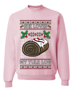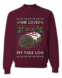 She Loves my Yule Log, Unisex Ugly Christmas Sweater Crewneck Sweatshirts