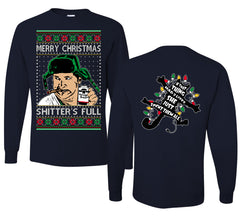 Shitter's Full Cousin Eddie Christmas Family Vacation Ugly Christmas Front and Back Sweater Mens Long Sleeve Shirt