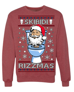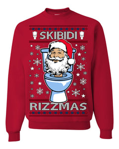 Skibidi Rizzmas Funny Toilet Video Viral Brain Rot Meme, Gen Z Alpha Slang Brainrot Memes Ugly Christmas Sweater Crewneck Sweatshirt