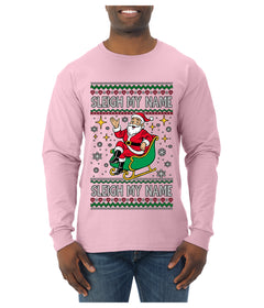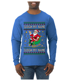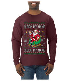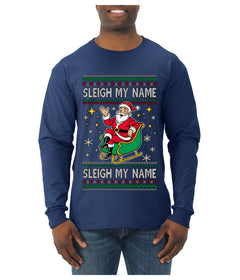 Sleigh My Name Sleigh My Name, Pop Singers, Song Lyrics Pun, Santa Sleigh, Ugly Christmas Sweater Mens Long Sleeve Shirt