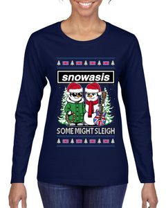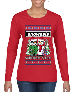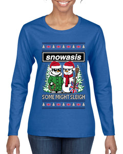 Snowasis English Rock Band Parody, Ugly Christmas Sweater Womens Graphic Long Sleeve T-Shirt
