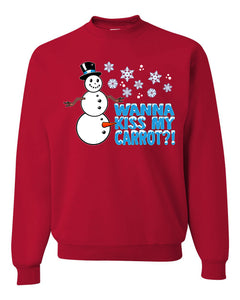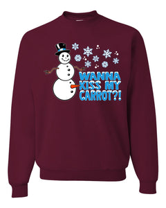 Snowman Dick Joke Wanna Kiss My Carrot Snowflakes Ugly Christmas Sweater Unisex Crewneck Graphic Sweatshirt